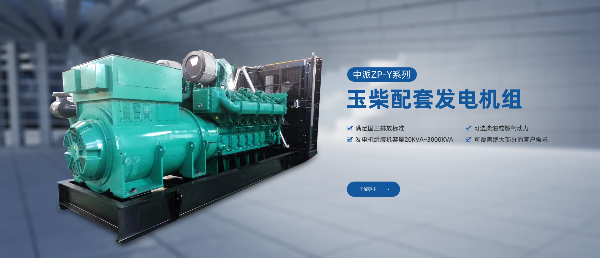 產品特點:中派ZP-Y系列玉柴發(fā)電機組系列機組采用廣西玉柴機器股份有限公司生產的YC系列發(fā)動機,滿足國三排放標準,可選柴油或燃氣動力,發(fā)電機組裝機容量20KVA~3000KVA,可覆蓋絕大部分的客戶需求。